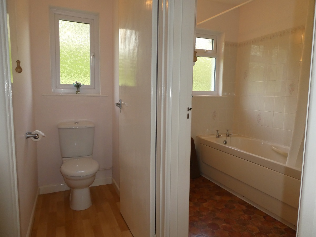 Bathroom and toilet: The toilet is separate from the bathroom which is equipped with a full size bath with overhead shower.