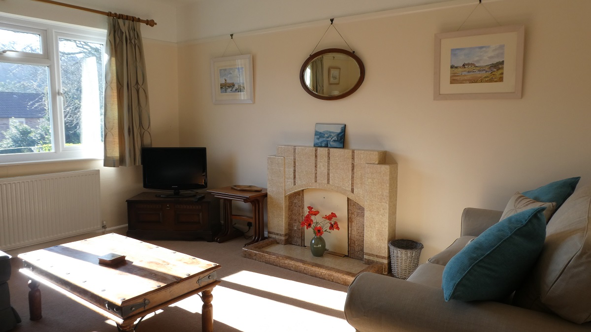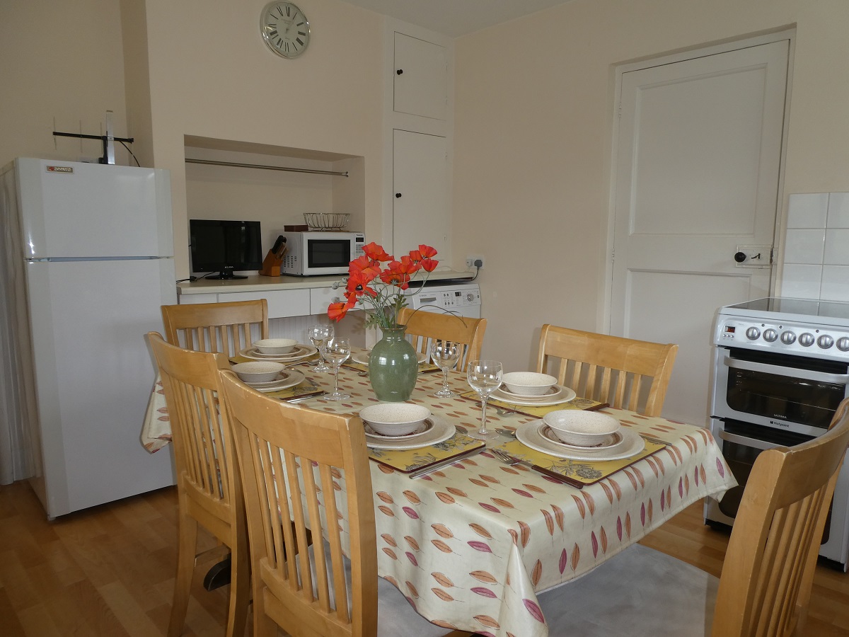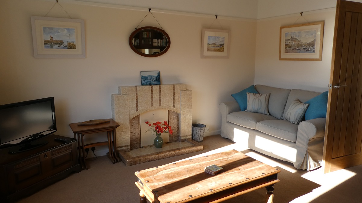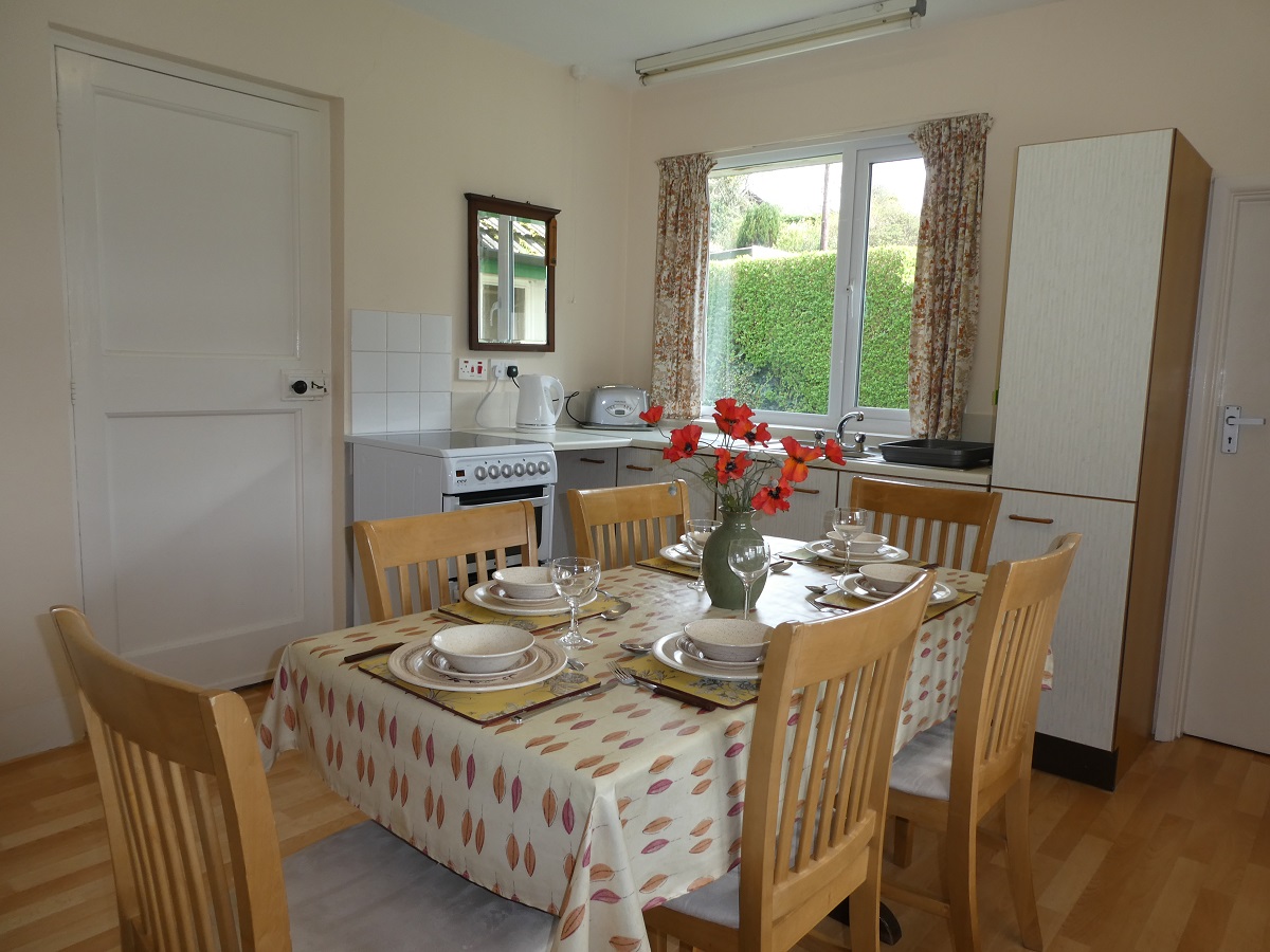 The lounge: A bright sunny, south facing room with a three-seater and a two-seater sofa with a large foot stool; perfect for cozy nights in watching the Smart Freeview TV or a DVD or read a book from our small collection. There is also a coffee table and a dresser where you will find puzzles and family games. For parties of six, there is the option of placing the tub chair from the smaller bedroom for extra seating if required.
