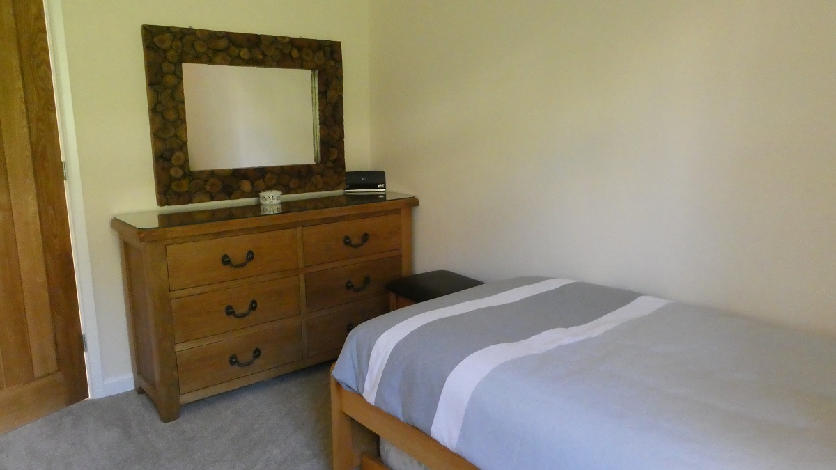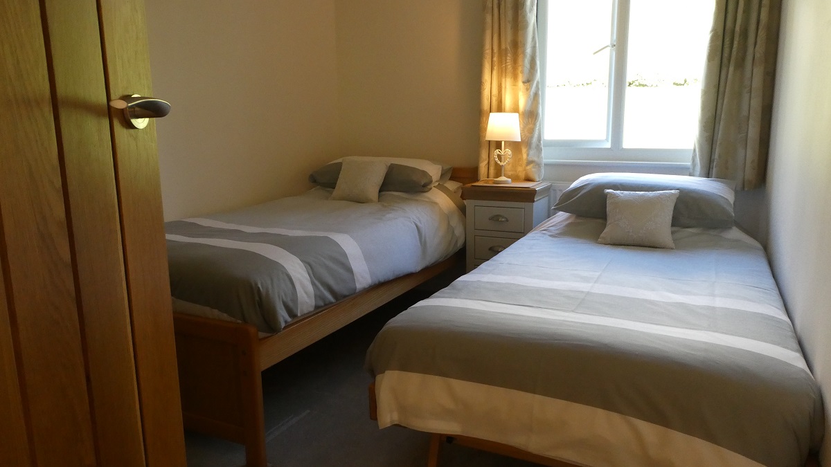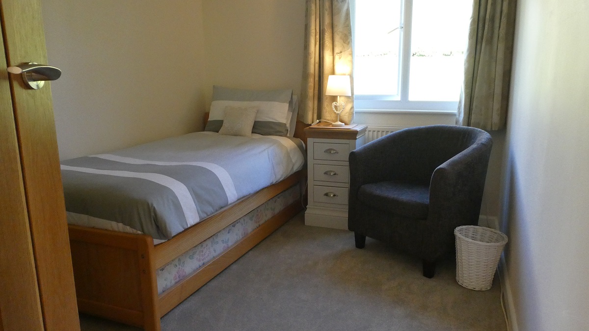 The single/twin room: Set at the rear of the property with views over the rear garden. Our single room has the option of being set out as a single room or a twin room, making it very versatile for extended families. There is a large chest of drawers for storage and a tub chair when used as a single.