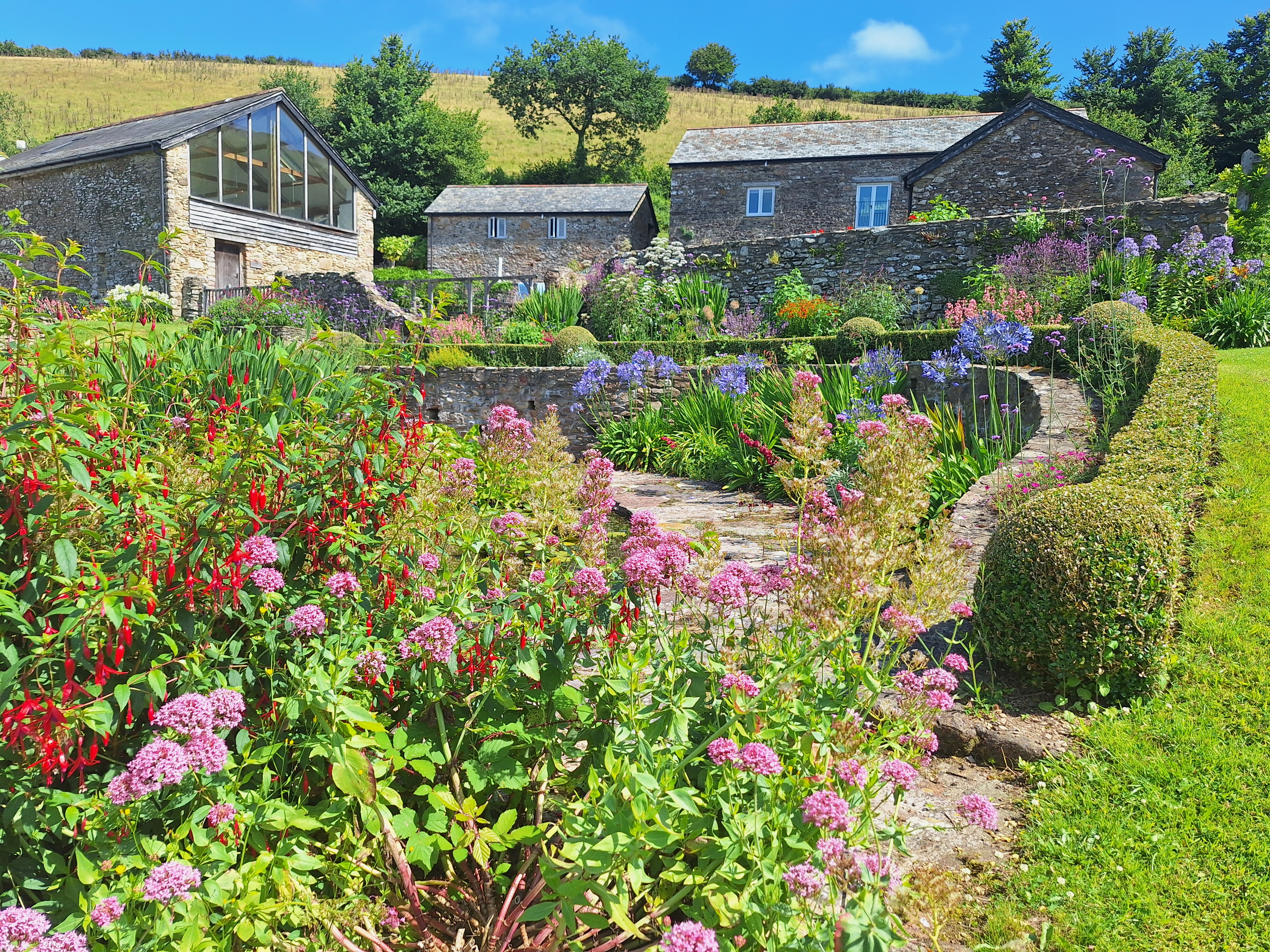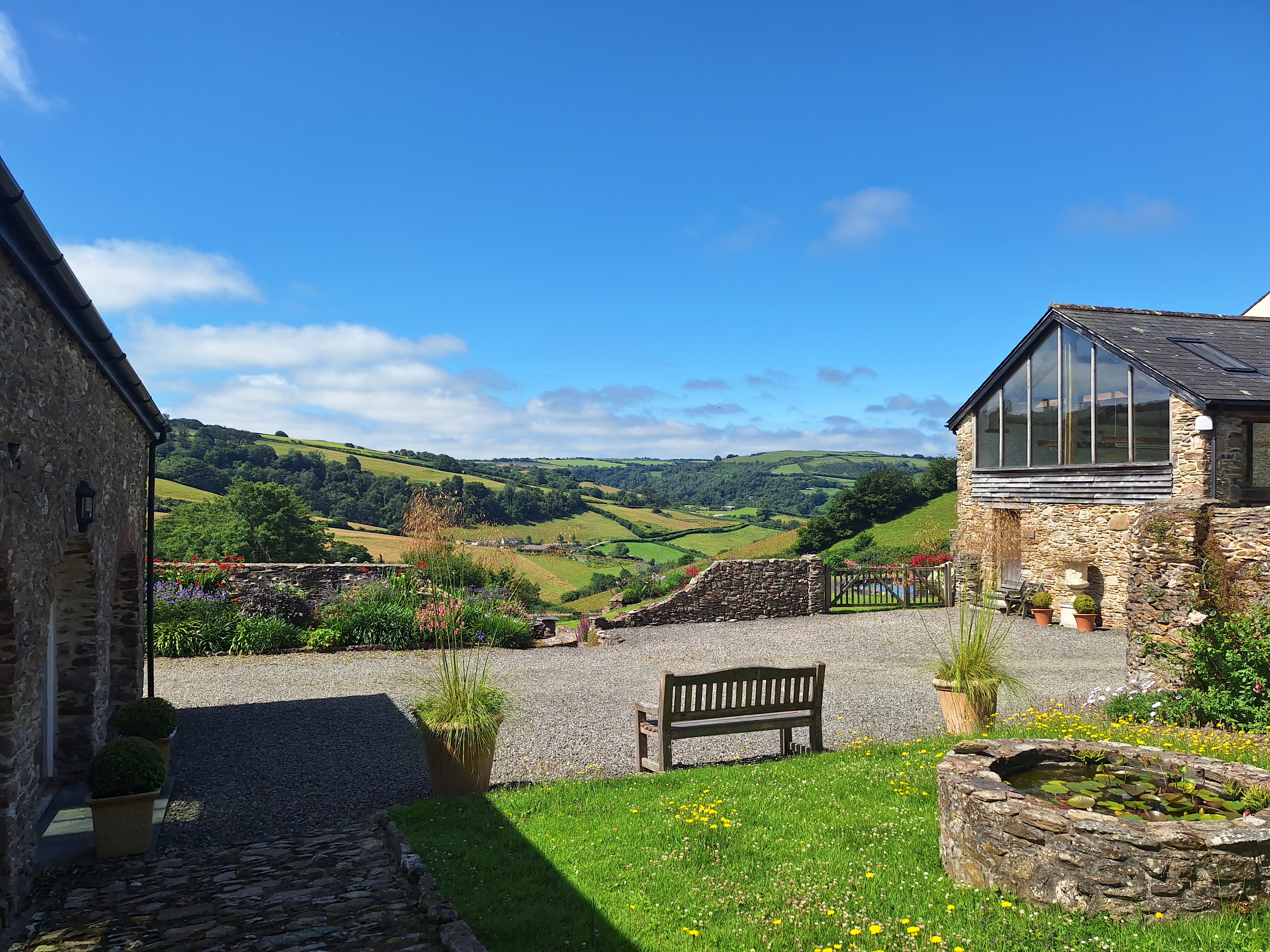 Outside Space: Nutcombe Barn has its own south facing courtyard accessed through French doors in either of the two downstairs bedrooms. Soak up the views whilst dining at our beautiful wicker table and chairs or relax on either of the two sun loungers. A perfect spot to sit and watch the swallows dipping on the pond across the courtyard.