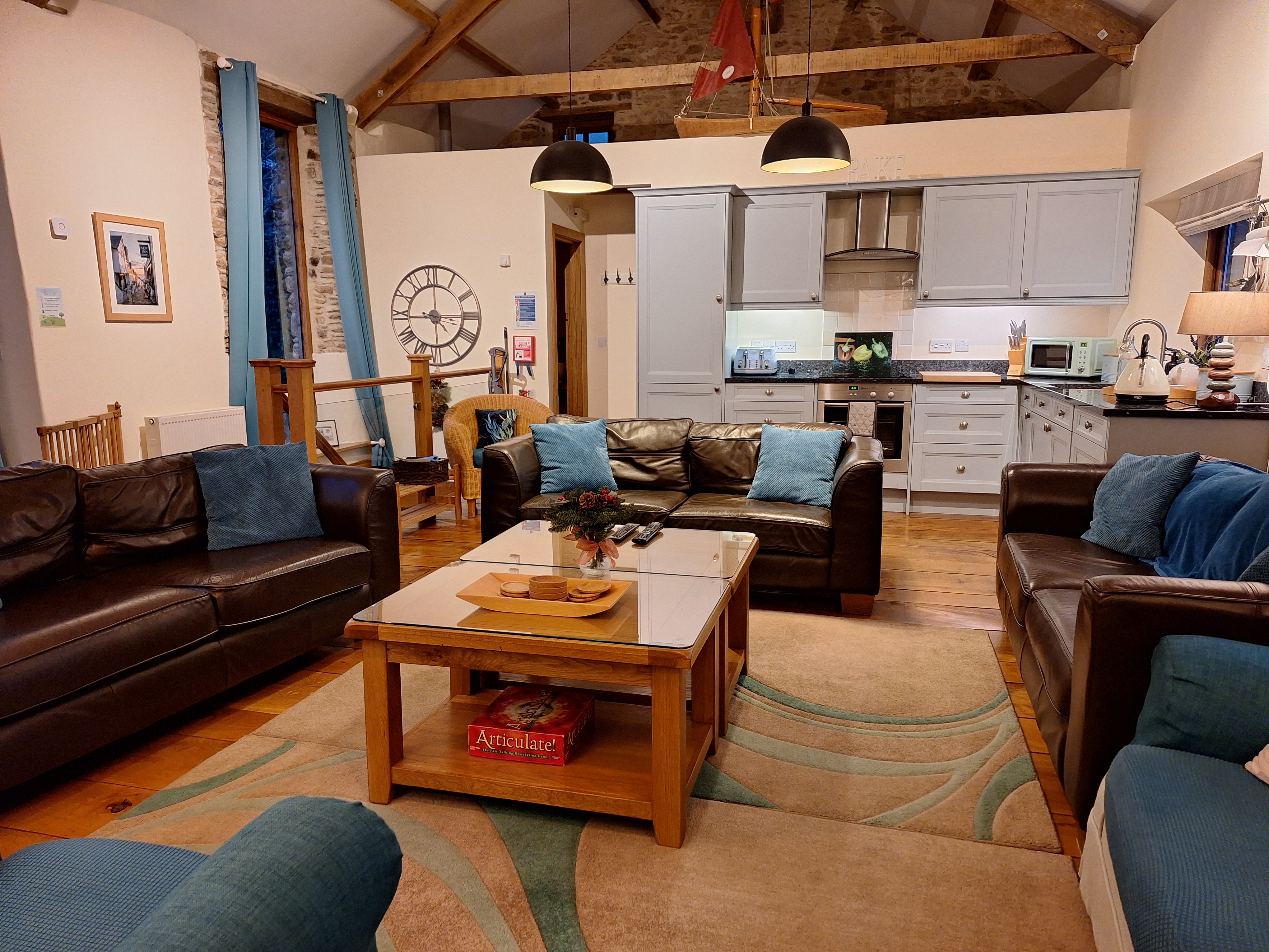 Large family gatherings: To enable us to cater for larger parties, we have the capability of opening up between Nutcombe Barn and Cider House at first floor level to create one larger property that can sleep ten people in five en-suite rooms (Don't worry, there is two feet of sound insulation between the two properties when taken separately). This offers the perfect solution for large family gatherings like Christmas and New Year or just an extended family holiday. There is the option to have the furniture moved so that Nutcombe Barn becomes a social space and Cider House becomes a dining area (Christmas & New Year only). Please note This is not available during peak summer season.