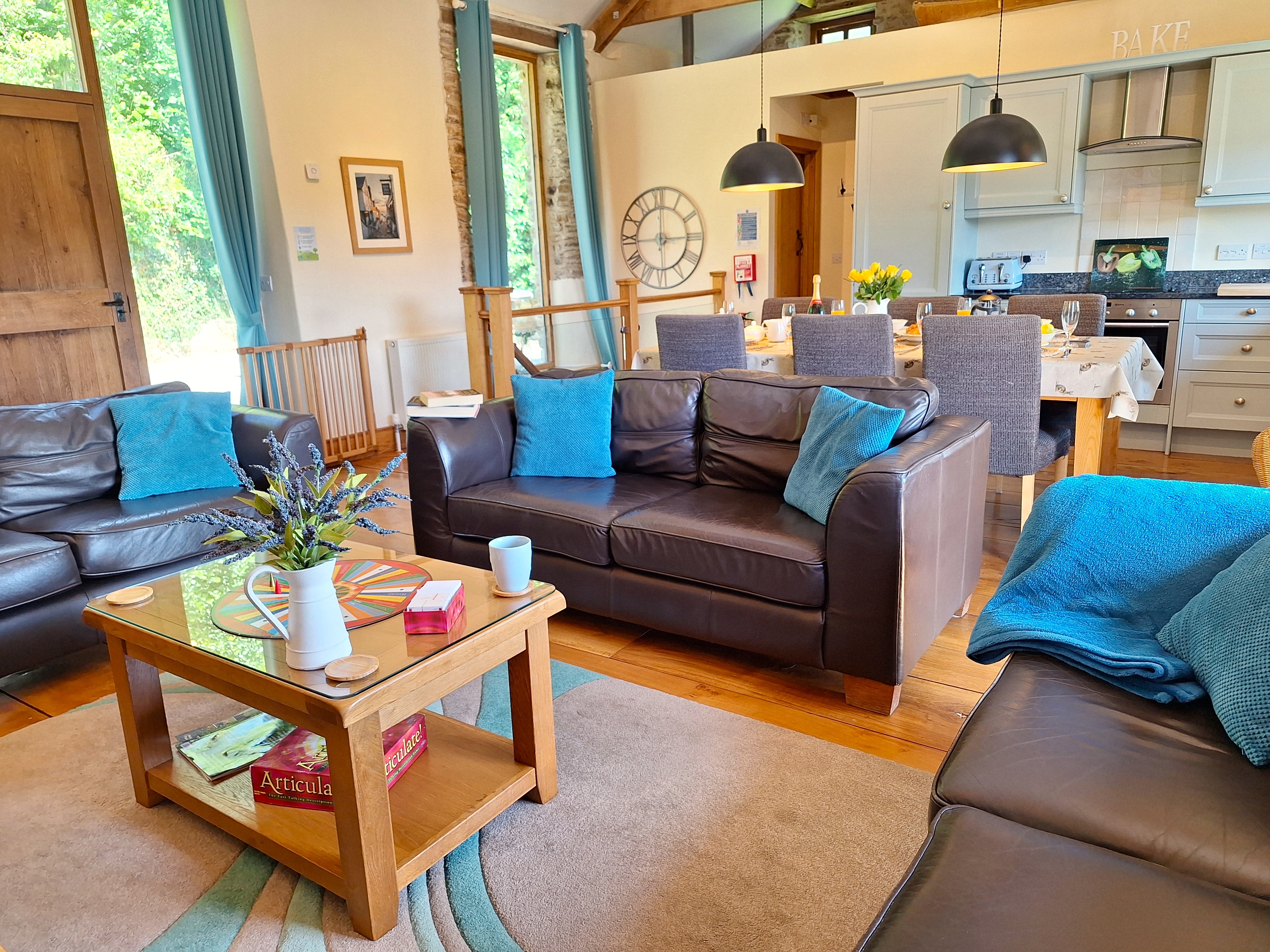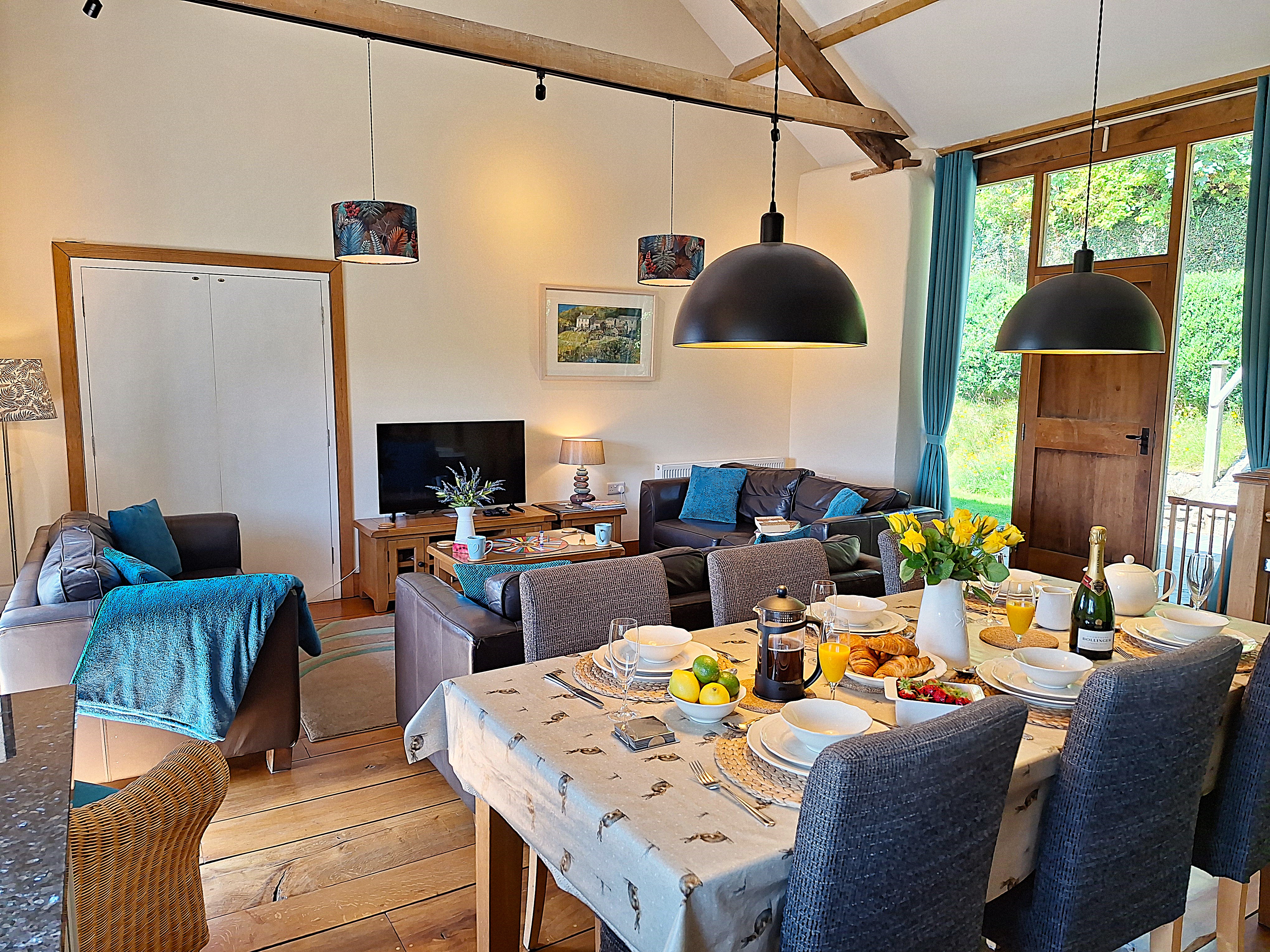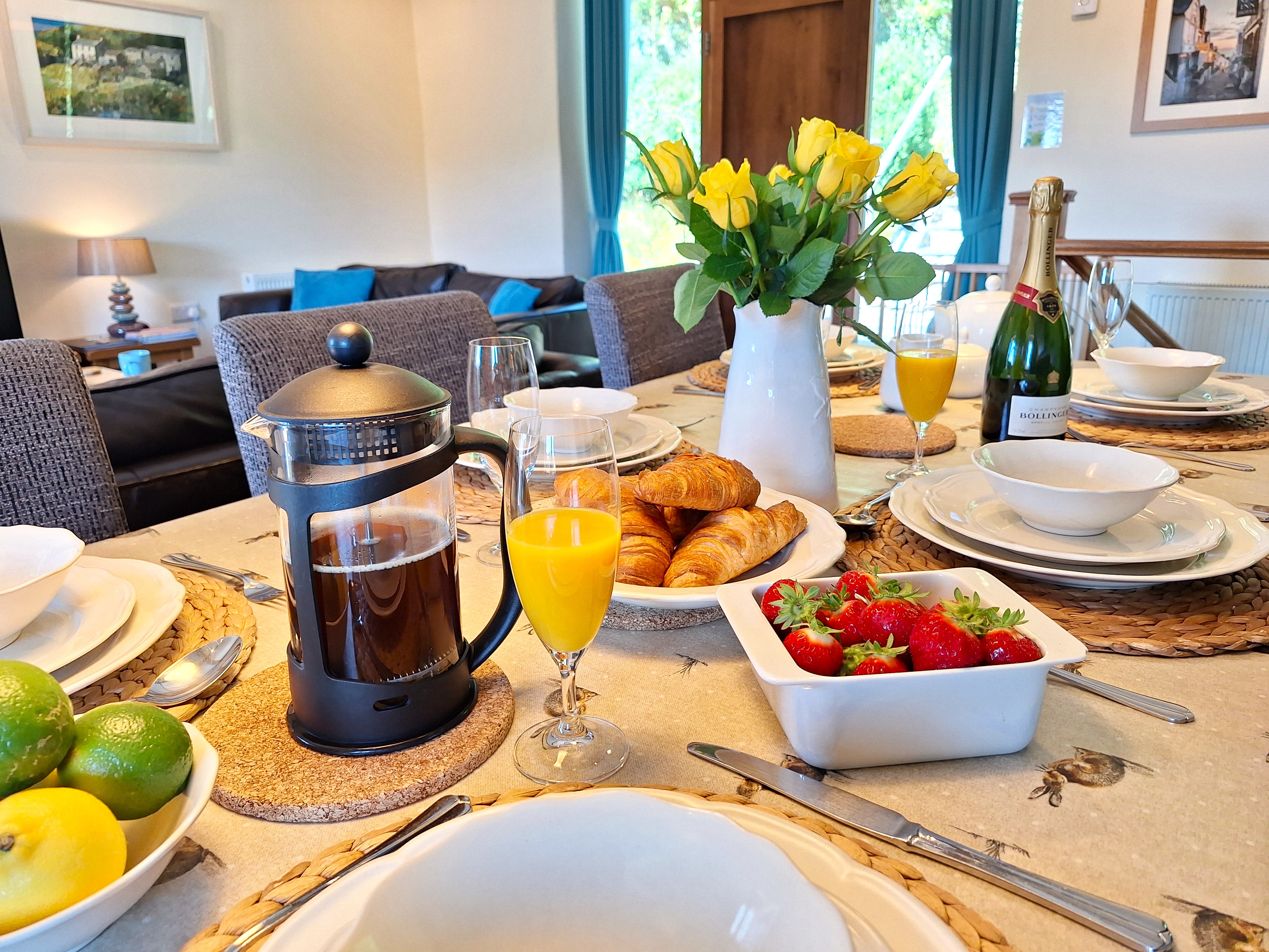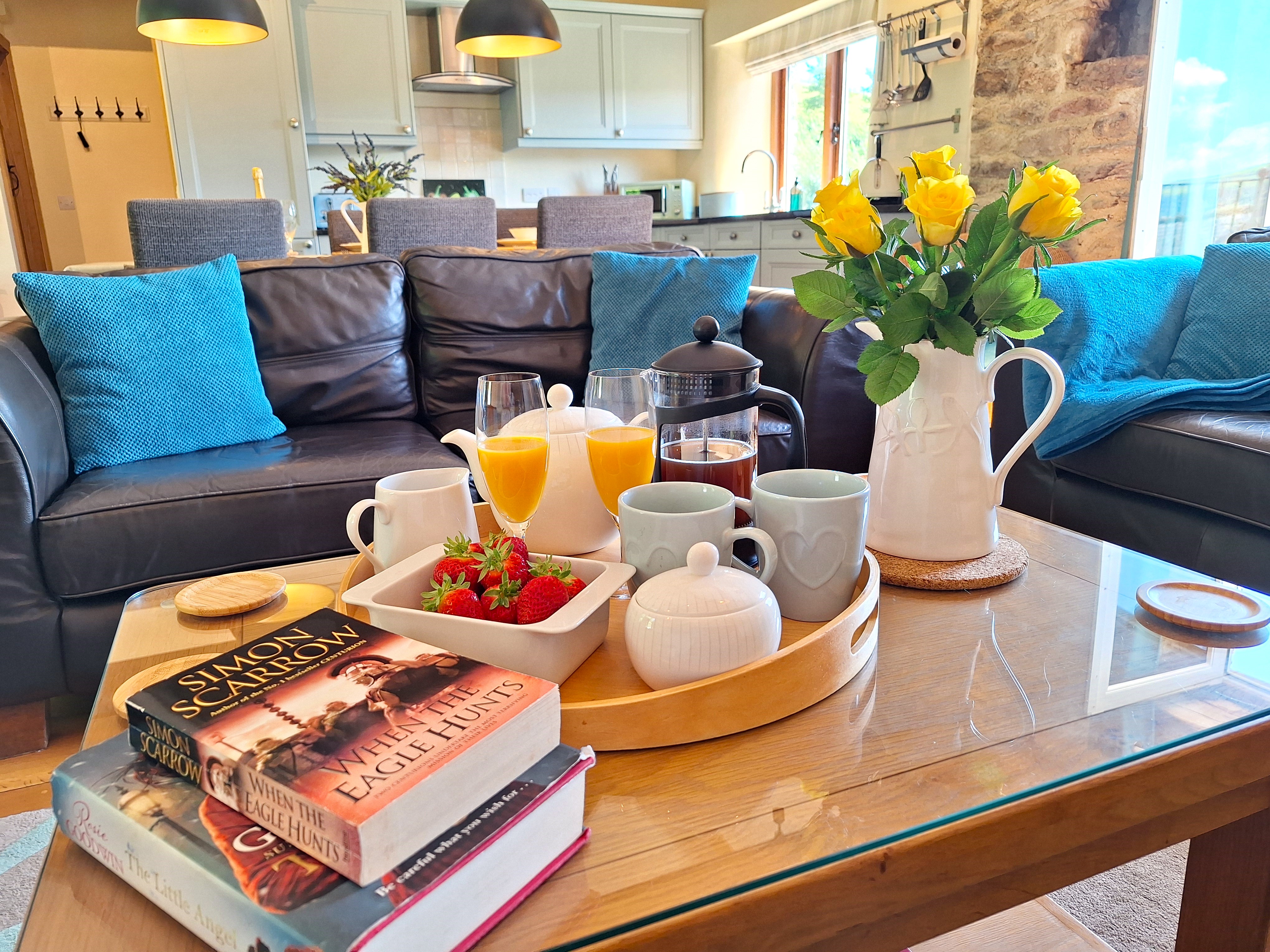 What's Included: Homemade Cream Tea on arrival (including Scones/Cream/ Jam and Milk)/Tea-bags/Coffee/Sugar/Washing Up Liquid/One dishwasher tablet per day of stay/Anti-Bac cleaner and cloths/Dishcloths & scourers/Foil/Cling Film/Bin Bags/Food Waste Bags/Salt & Pepper/Hand soap/One toilet roll per toilet/Kitchen Roll. For our four legged visitors see below.