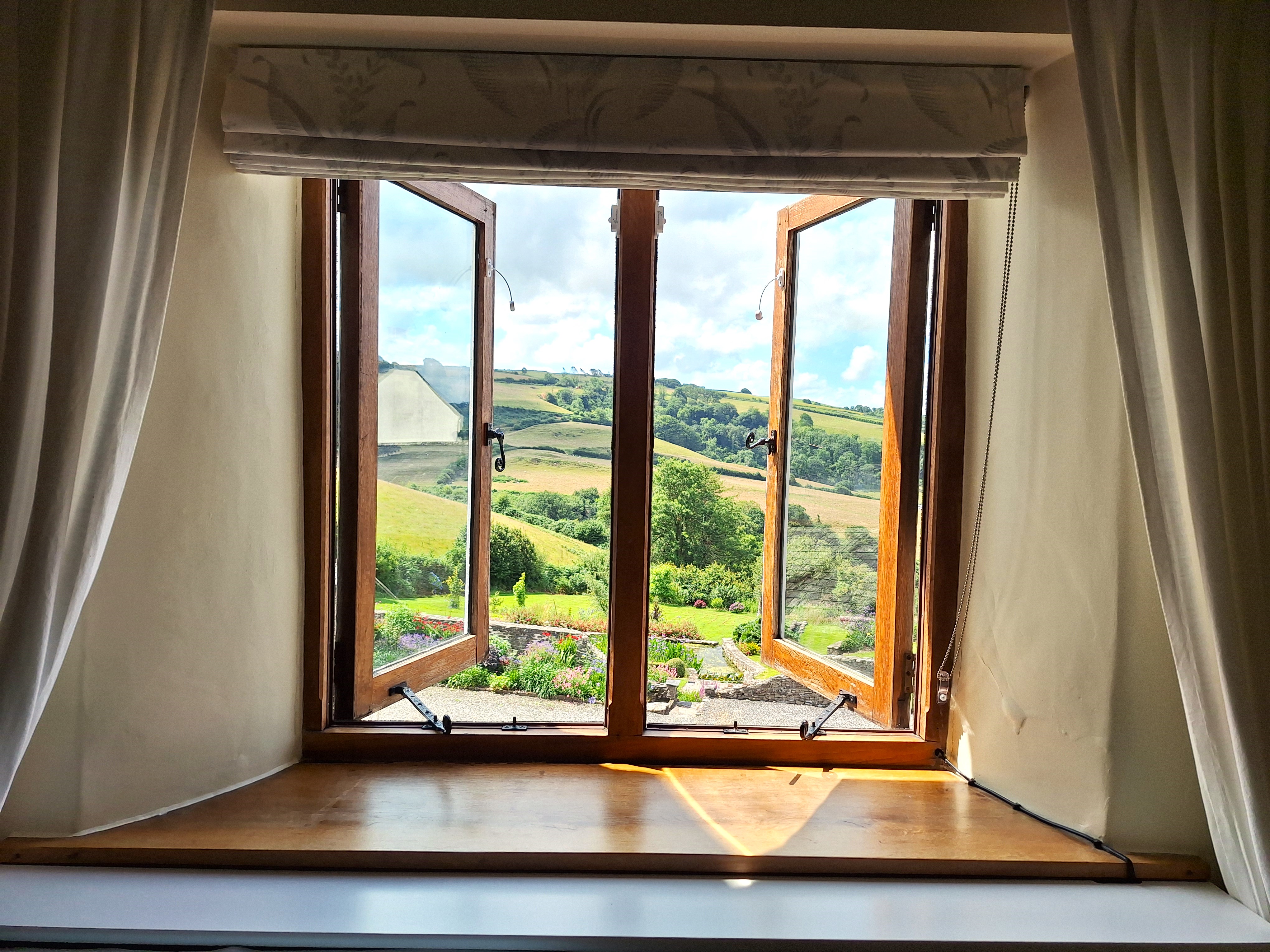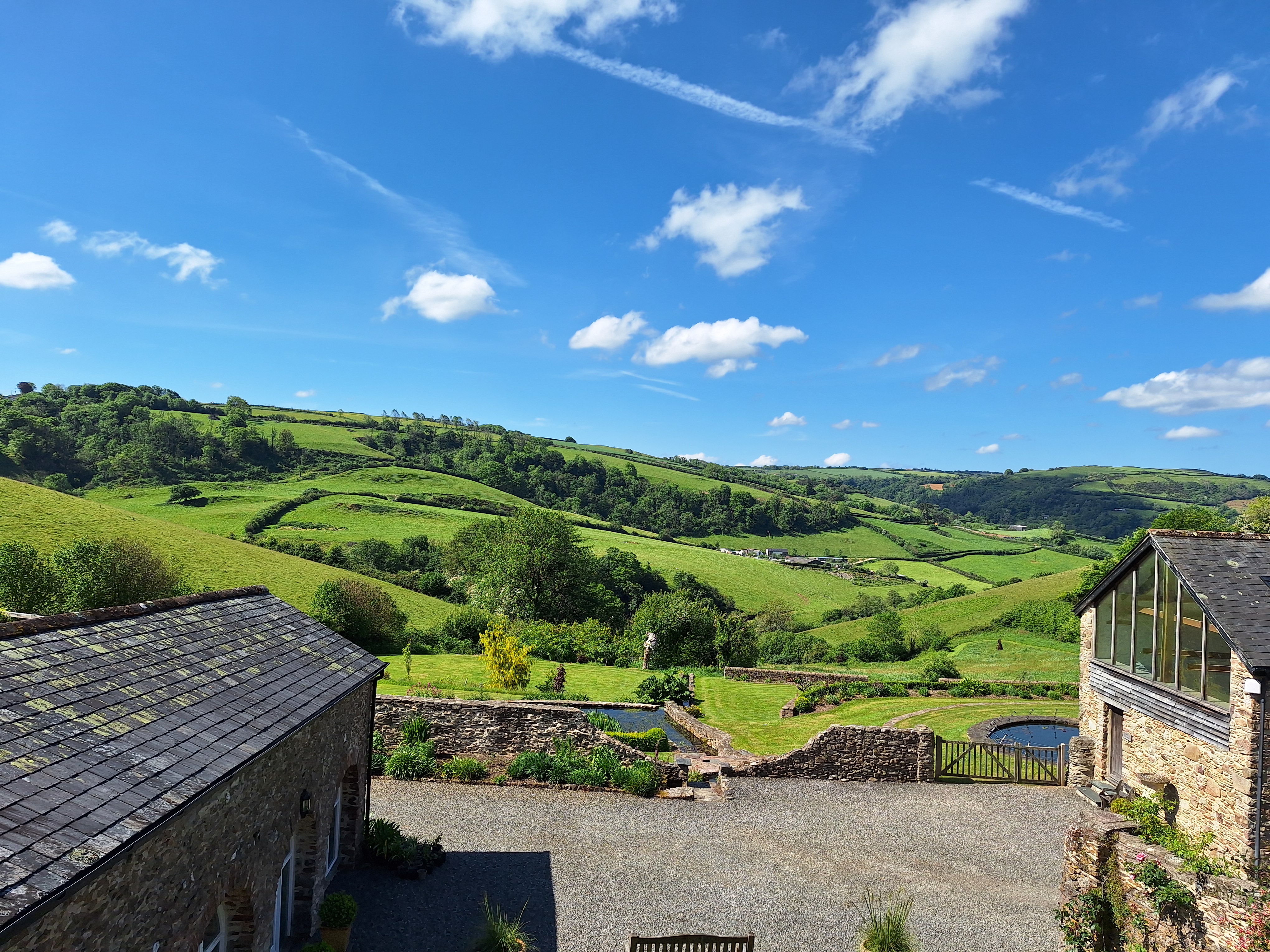 The Cider House, our smallest cottage, is a Grade II listed, bank barn conversion (to the left of the main picture). Perfect for couples or small families, sleeping up to four people. With stunning views from all rooms and its own south facing, sun terrace overlooking the original cobbled and grassed courtyard to the garden and countryside views beyond. Two en-suite bedrooms, one king size and one single/small twin (perfect for children sharing). Can be booked with Nutcombe Barn to create one larger cottage sleeping up to 10 in 5 en-suite rooms.