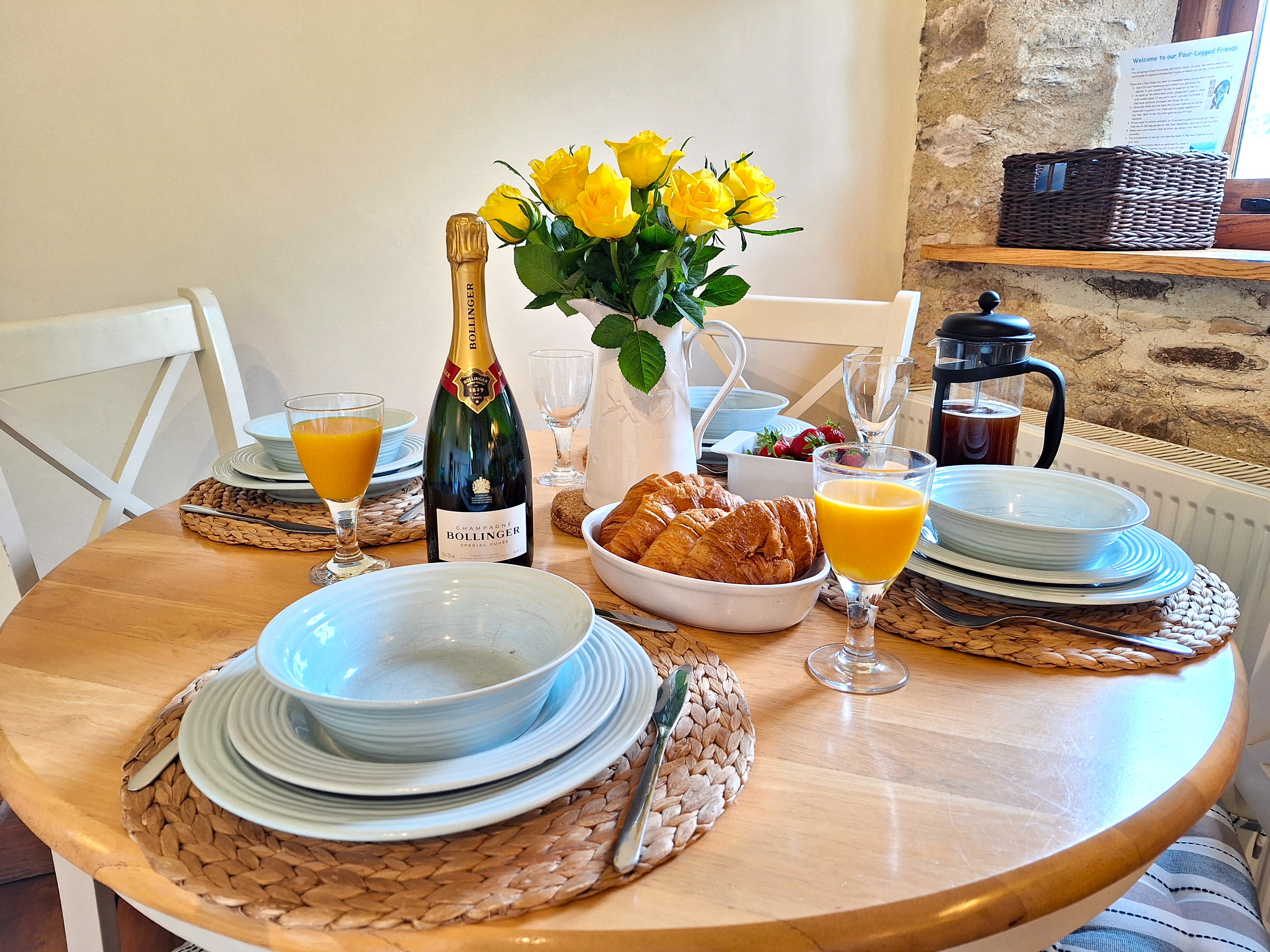 What's Included: Homemade Cream Tea on arrival (including Scones/Cream/ Jam and Milk)/Tea-bags/Coffee/Sugar/Washing Up Liquid/One dishwasher tablet per day of stay/Anti-Bac cleaner and cloths/Dishcloths & scourers/Foil/Cling Film/Bin Bags/Food Waste Bags/Salt & Pepper/Hand soap/One toilet roll per toilet/Kitchen Roll. For our four legged visitors see below.