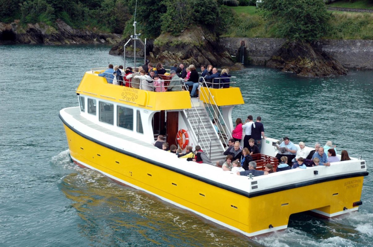 The Ilfracombe Princess is a large comfortable catamaran with an open deck and undercover seating and is Ilfracombes largest passenger vessel. It has upper deck seating area as well and toilets and commentary on all its trips. Dogs are welcome on the lower deck and children under 4 go free! They travel along the coast from Ilfracombe to Baggy Point or Combe Martin spotting seals, dolphins and nesting birds along the coastline.